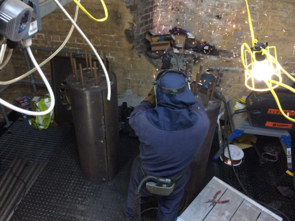 The original boilers were mounted on a platform suspended at 15m above the floor and this was extended by T Brown to accommodate the new boilers.