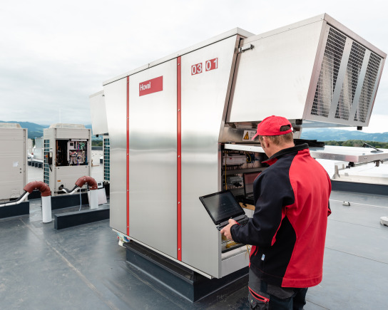 All installed RoofVent and TopVent units are combined with 30 kW heat pumps. The air-source heat pumps automatically adjust their output to the heating or cooling requirements of the building at any given time. "The decisive reason for choosing Hoval as a partner was the possibility of combining with a photovoltaic system, which we will soon integrate on the roof. We then use all of the generated electricity to operate the hall's air conditioning system. Another factor was the flexible and simple modular system of the solution, which combines all our requirements," says Krobath, pleased with the sustainable indoor climate solution.
