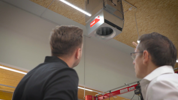 In the case of conventional systems, some of the energy losses are due to the routing of lines over long distances – whereas the self-contained individual units of the decentralised indoor climate system are characterised by short air lines (between heat/cold generation and the air outlet).
